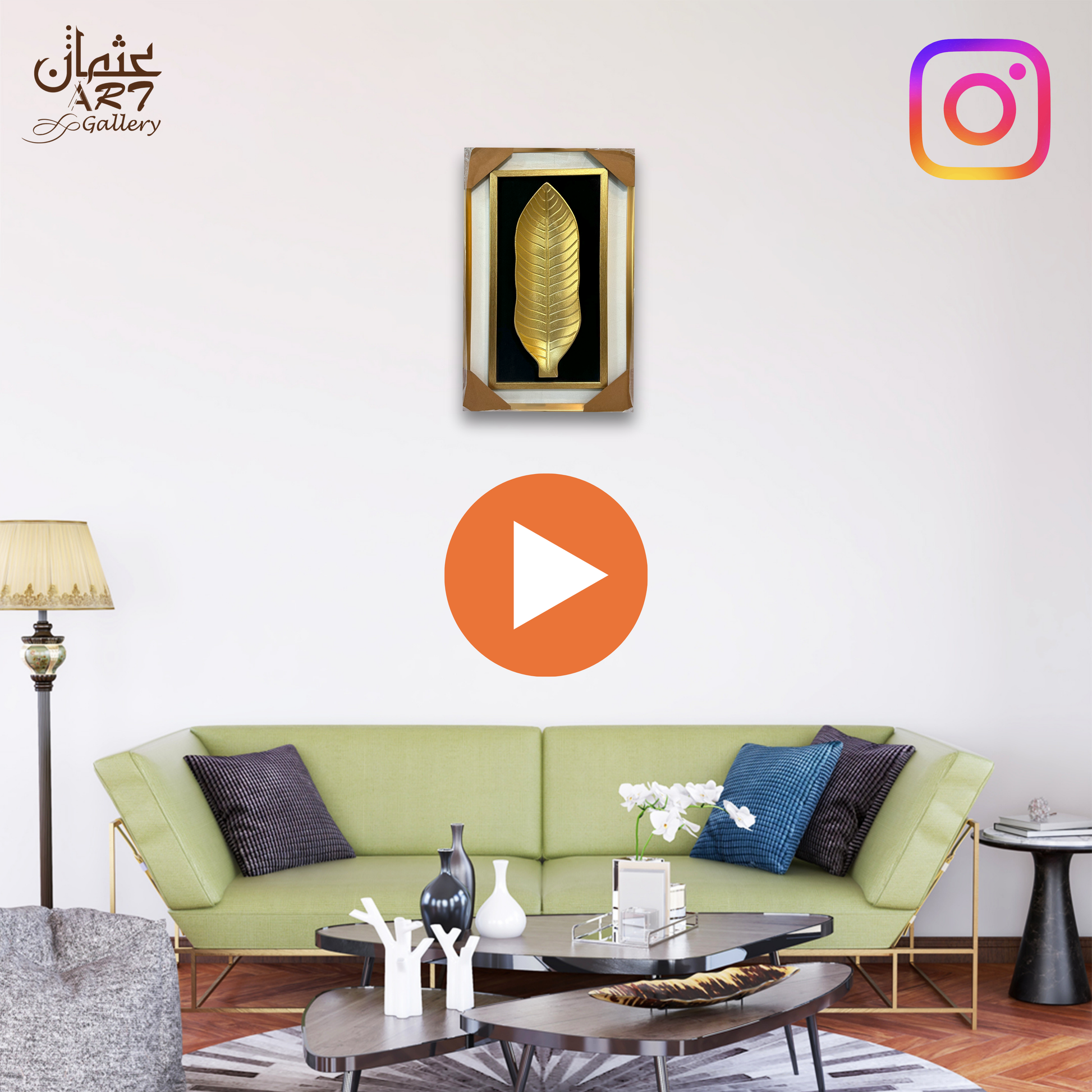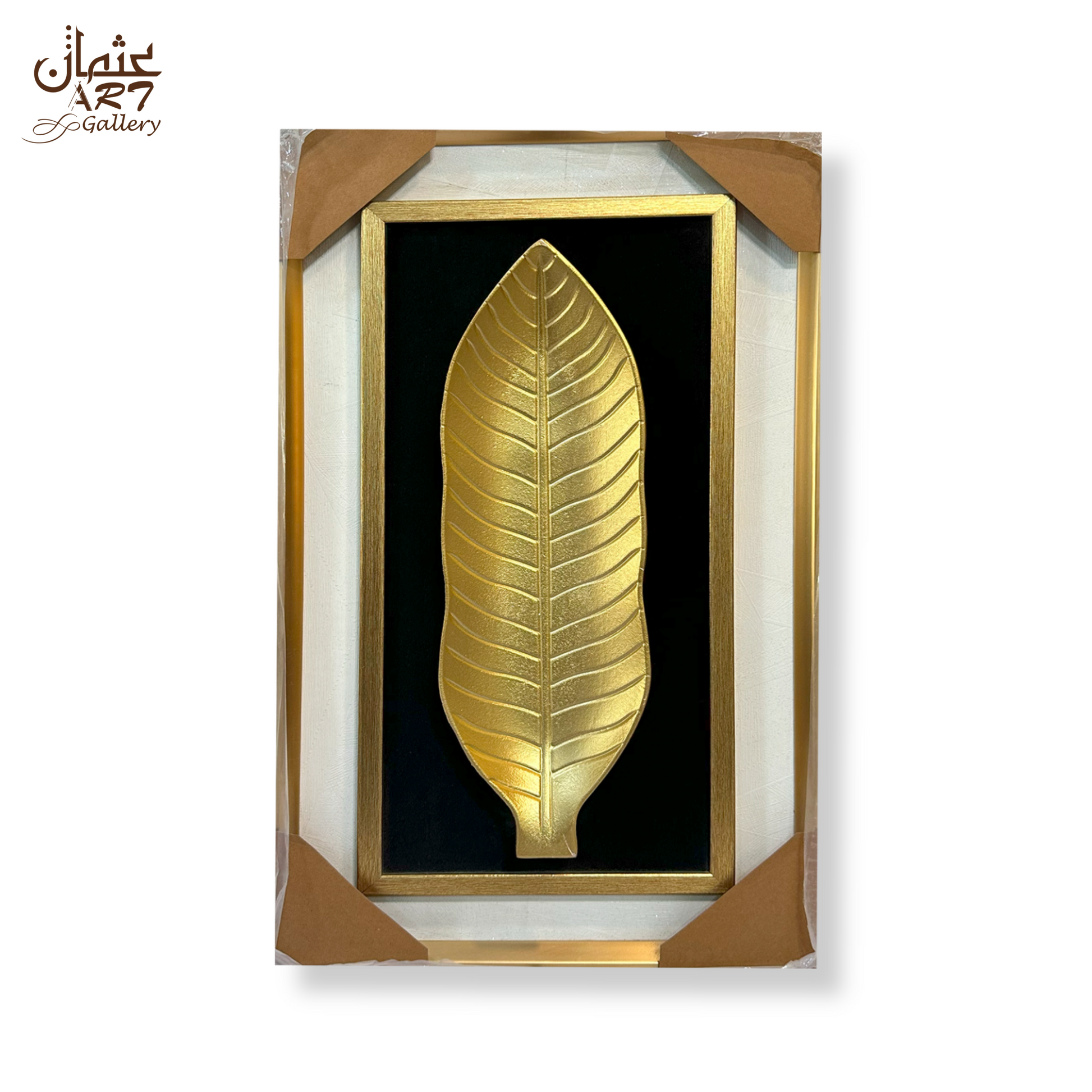 Bold leaf sculpture with pronounced central rib and sweeping side veins. The dark inner mount and layered surround emphasize contrast, giving the piece a luxe, contemporary finish.
