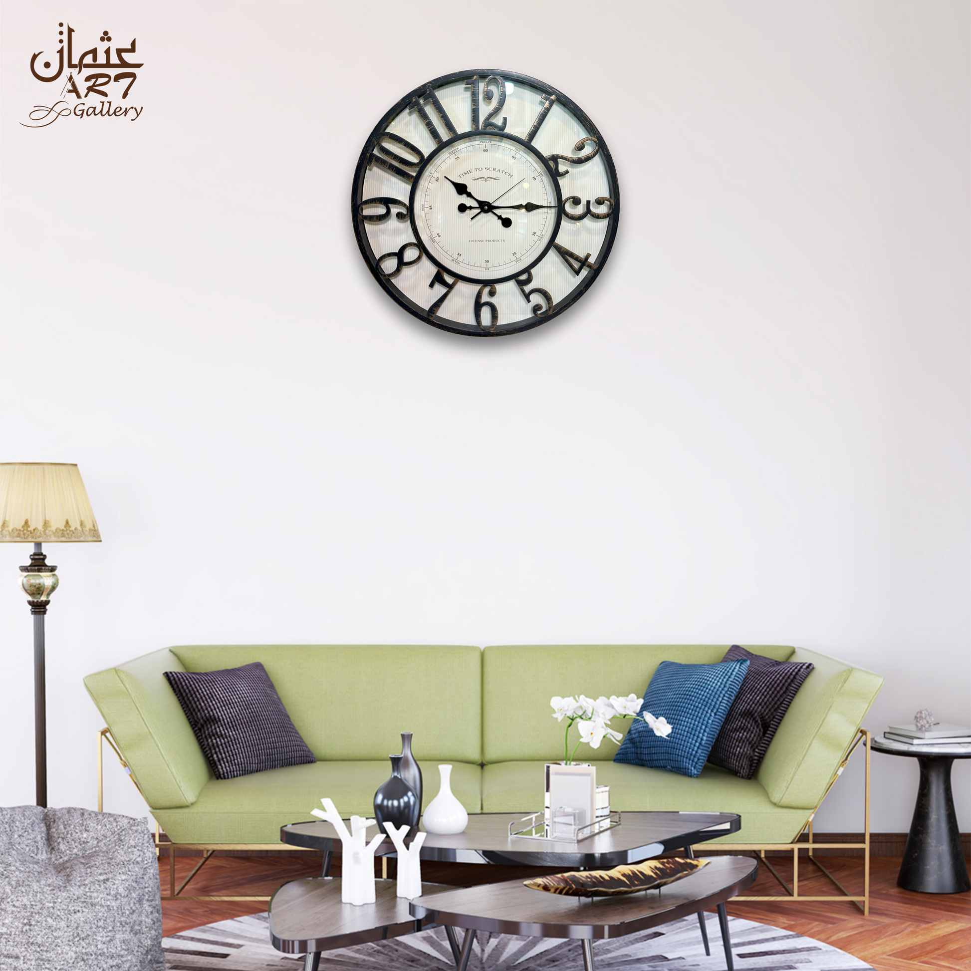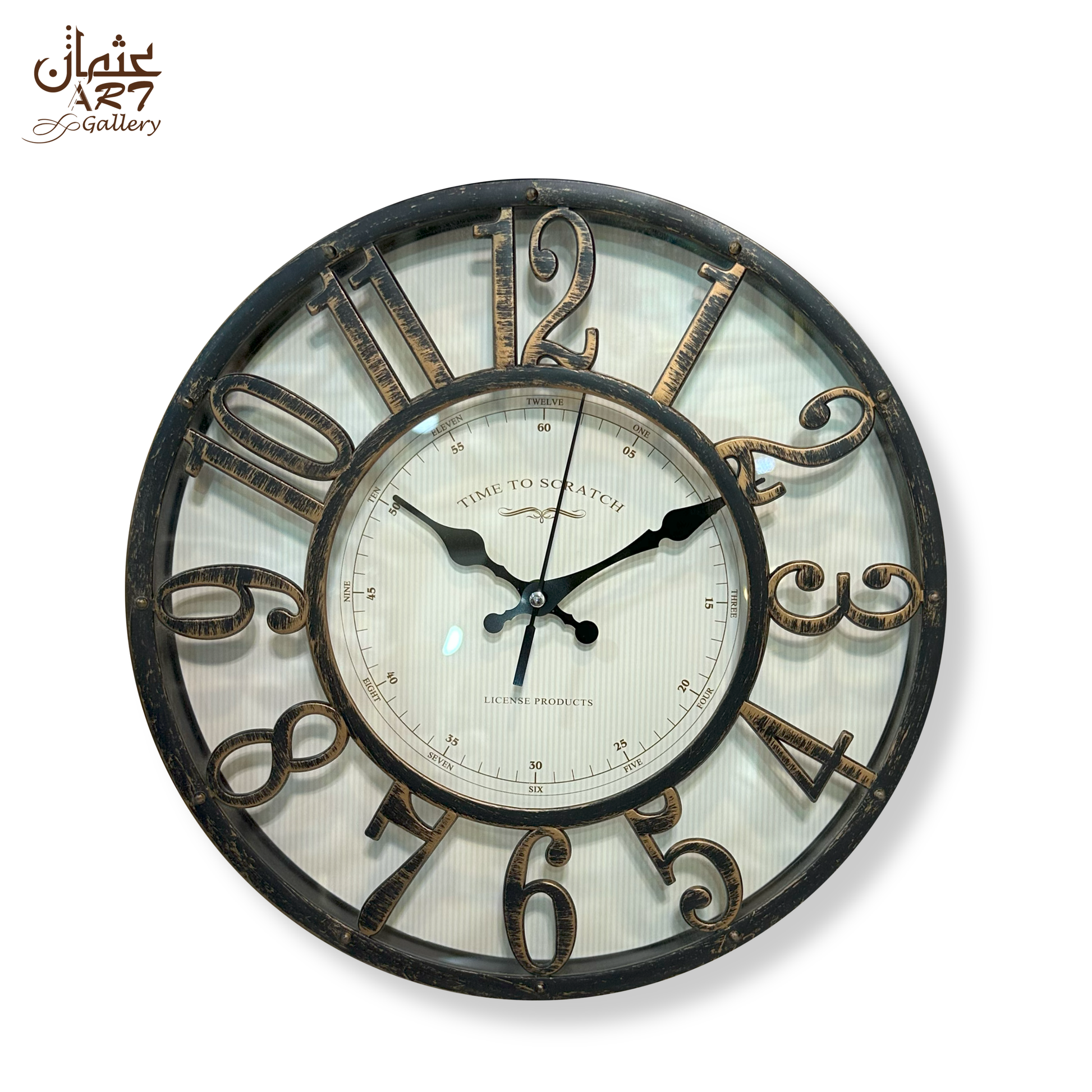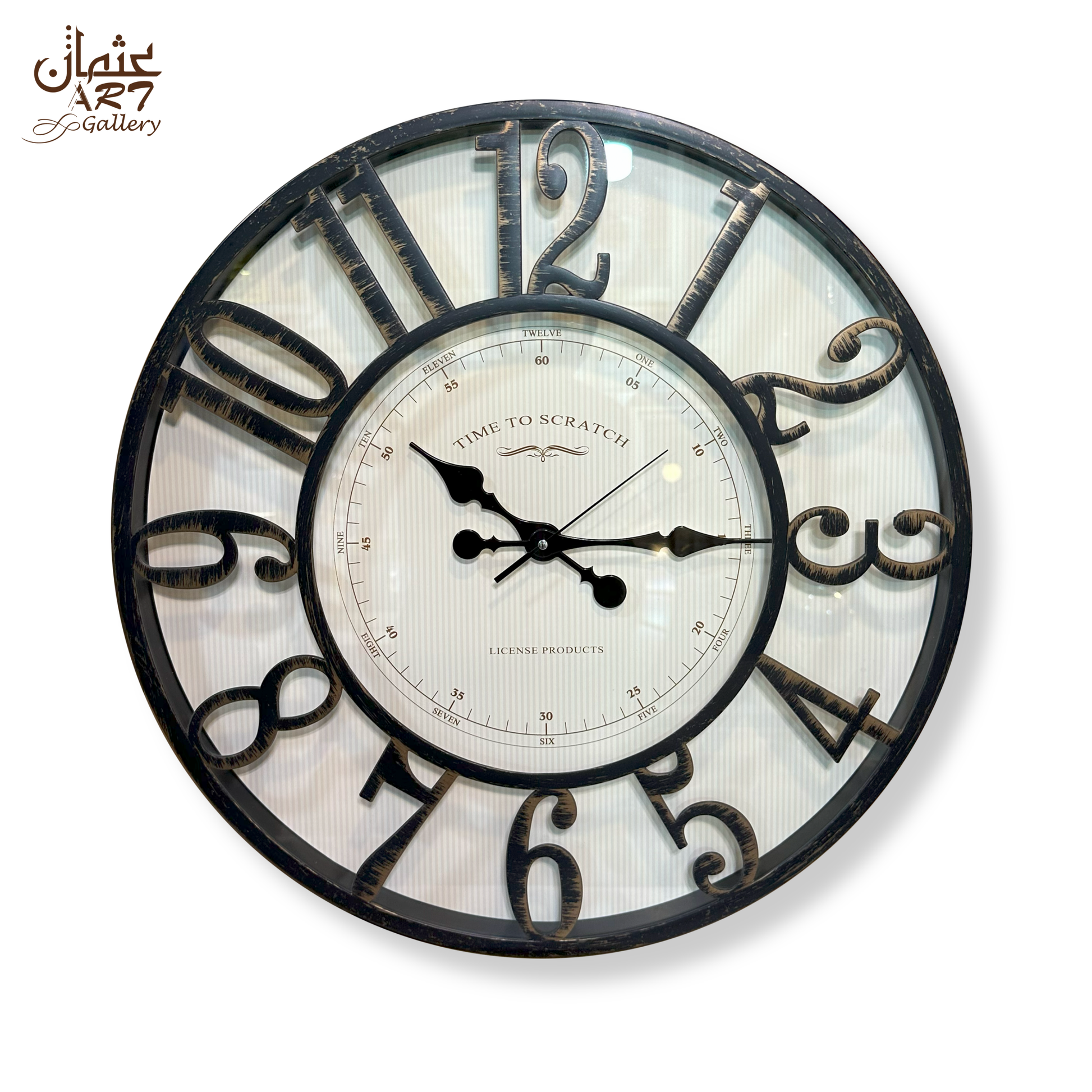 Elegant antique-style clock featuring bold Roman numerals and a distressed frame, perfect for classic interiors.