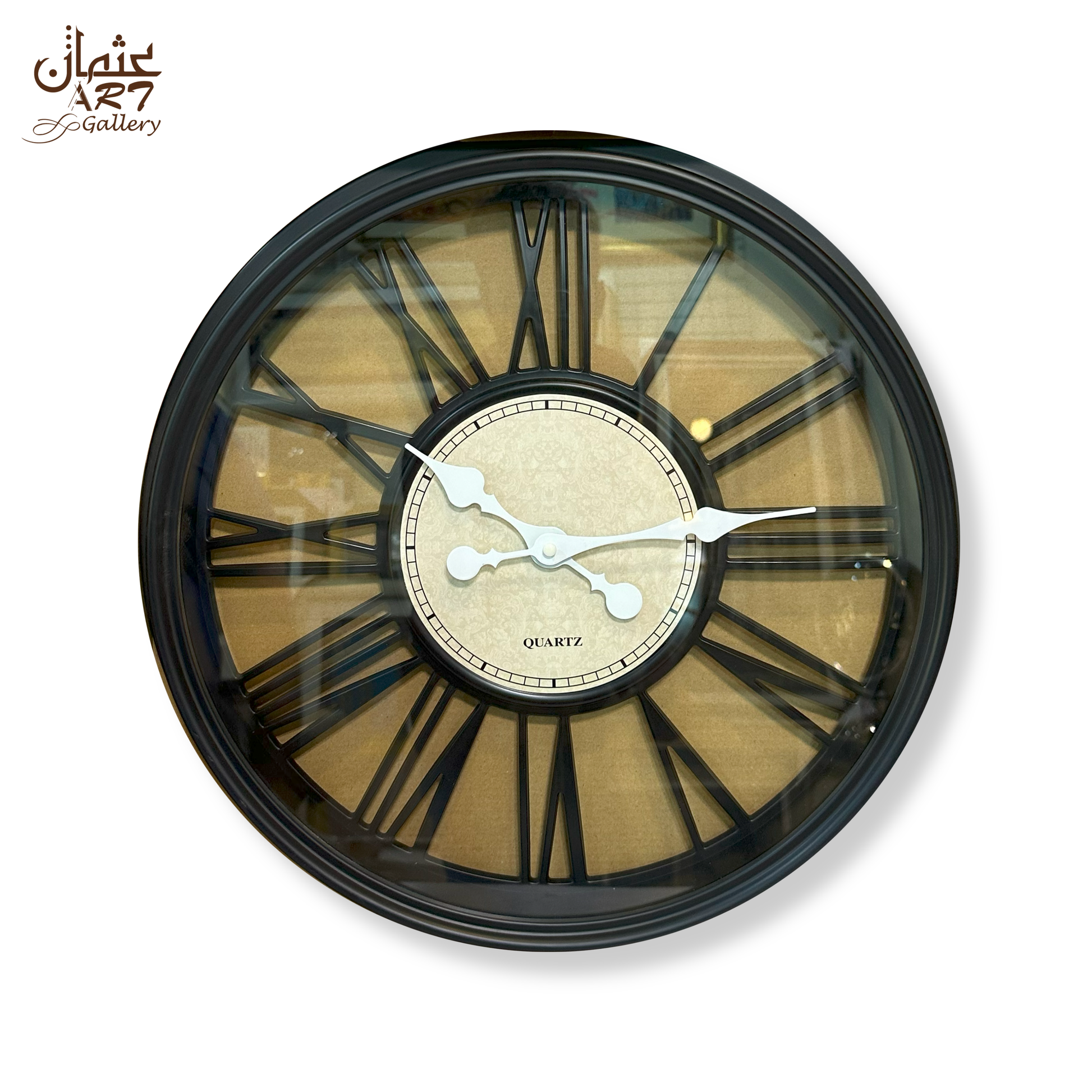 Vintage-style antique wall clock featuring open-frame Roman numerals with a contrasting beige center, ideal for a rustic or classic décor setup.
