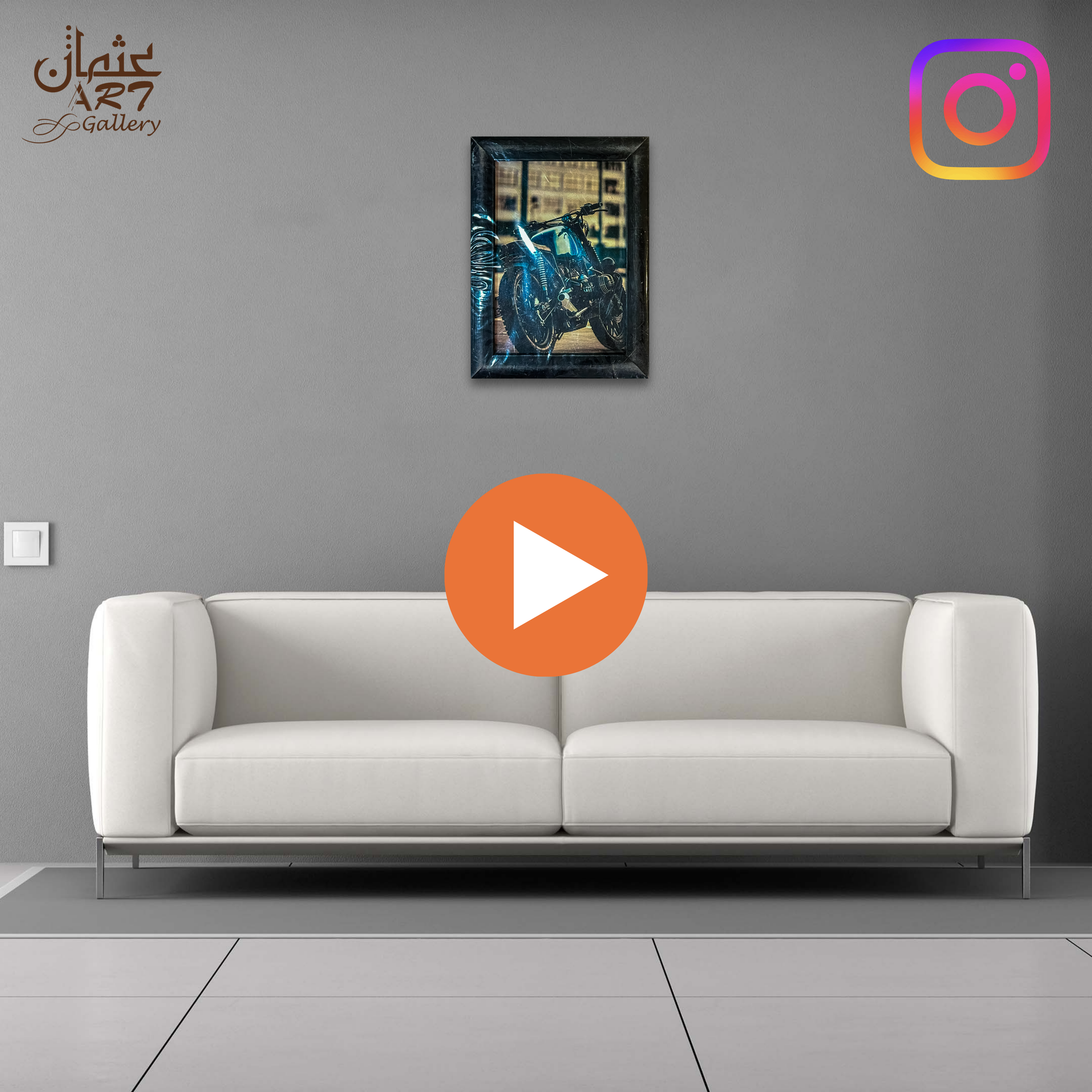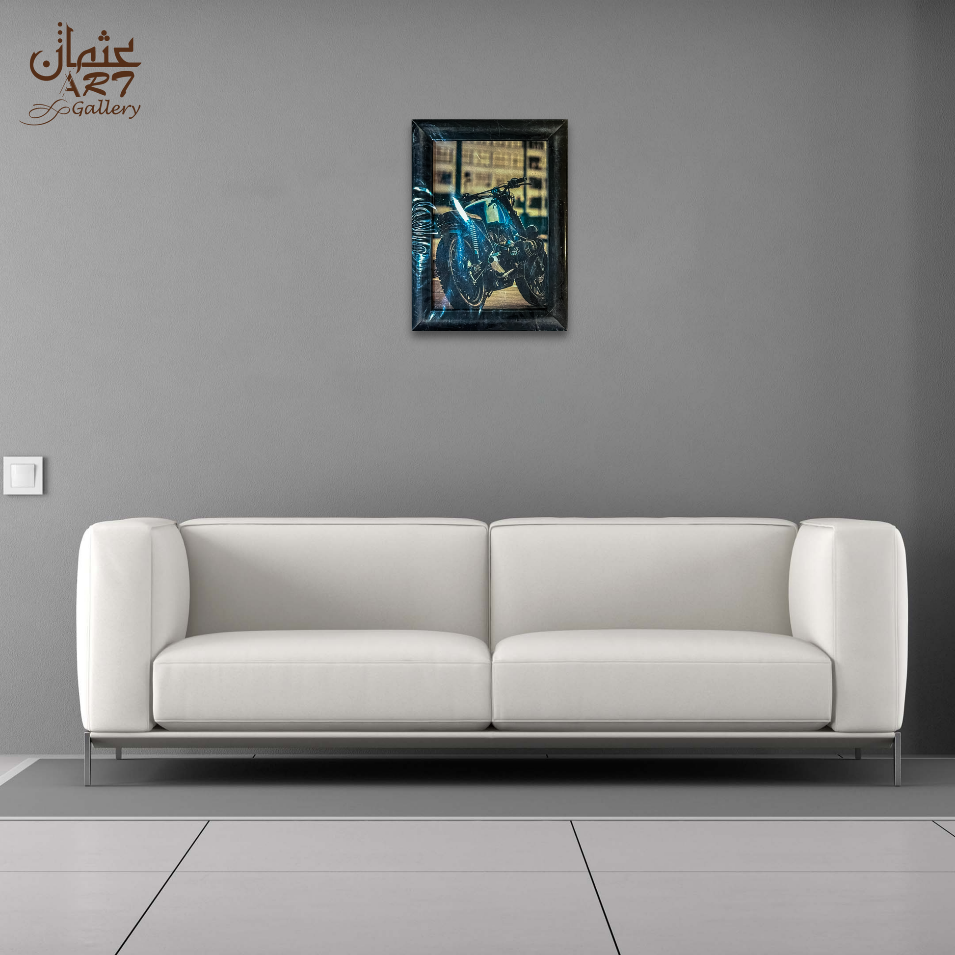 Stylish vintage-style motorcycle artwork framed with a black border. Perfect for bike lovers and modern interiors.