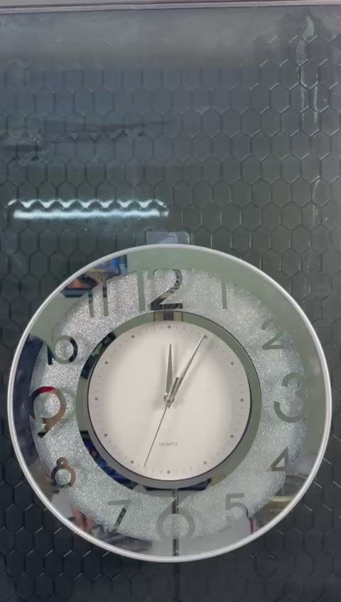 Elevate your interior with this elegant crystal-finish wall clock, designed to blend modern style with everyday functionality. Featuring a mirrored outer ring with a subtle glitter texture and bold cut-out numerals, this clock adds depth and sophistication to living rooms, bedrooms, offices, and hallways. The clean white central dial ensures excellent readability, while the quartz movement delivers accurate and reliable timekeeping. Its contemporary round design complements both modern and transitional décor, making it a versatile statement piece for any wall. Easy to mount and visually striking, this decorative wall clock is perfect for those seeking style, precision, and timeless appeal in one refined design.