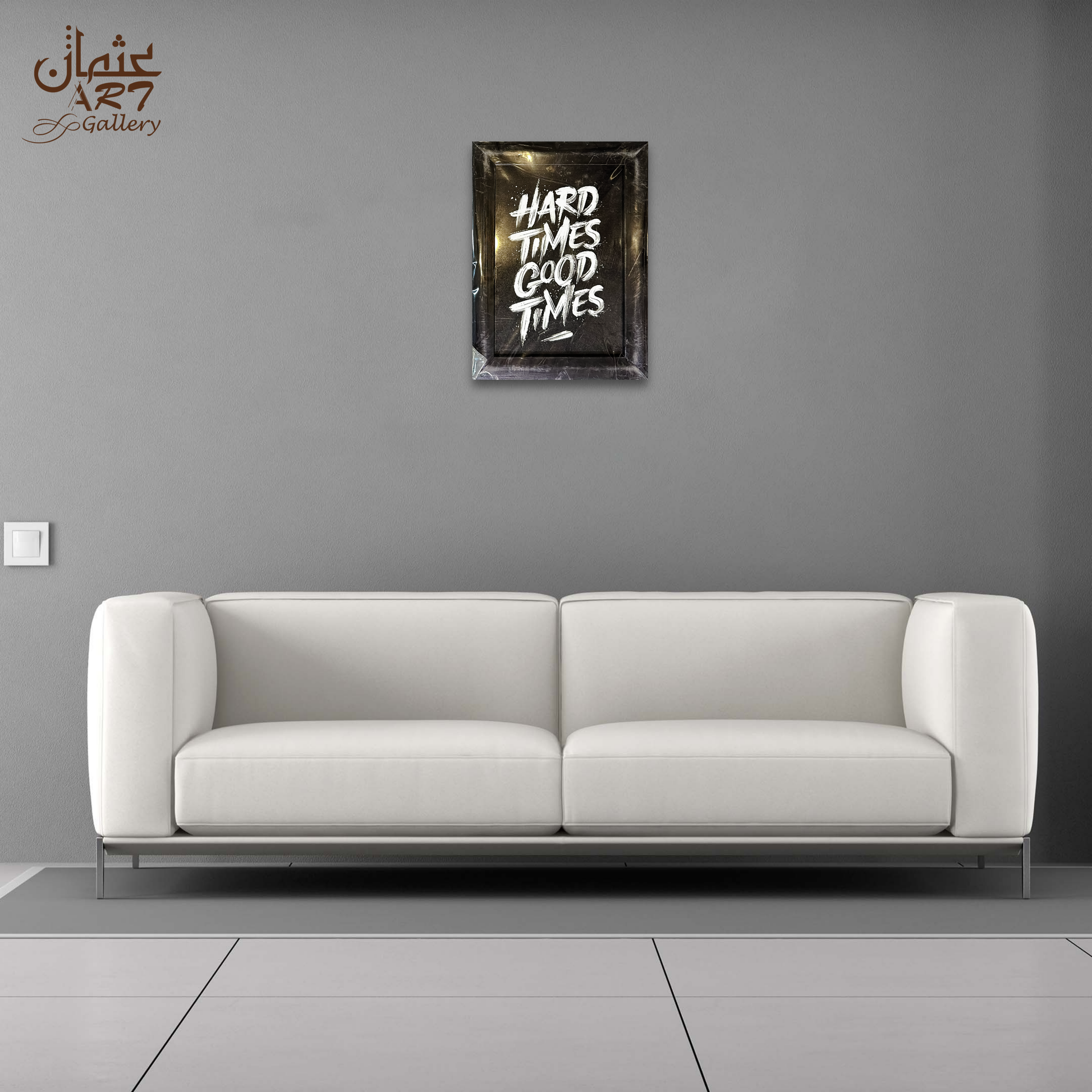 Minimal yet powerful monochrome design with the quote “Hard Times, Good Times.” A stylish piece that motivates perseverance and resilience.