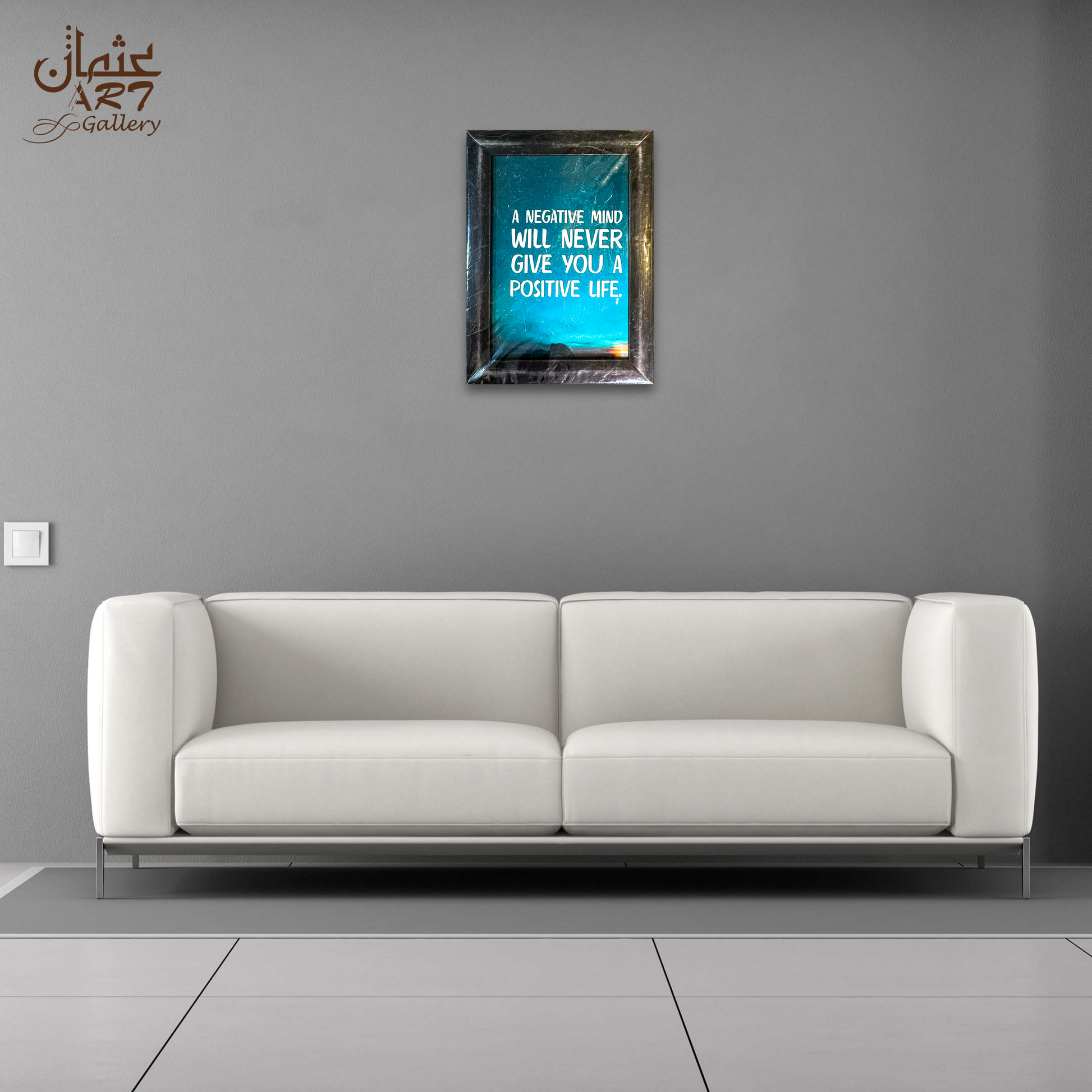 Inspiring frame with the saying “A negative mind will never give you a positive life” on a calming blue background. A refreshing reminder for daily motivation.