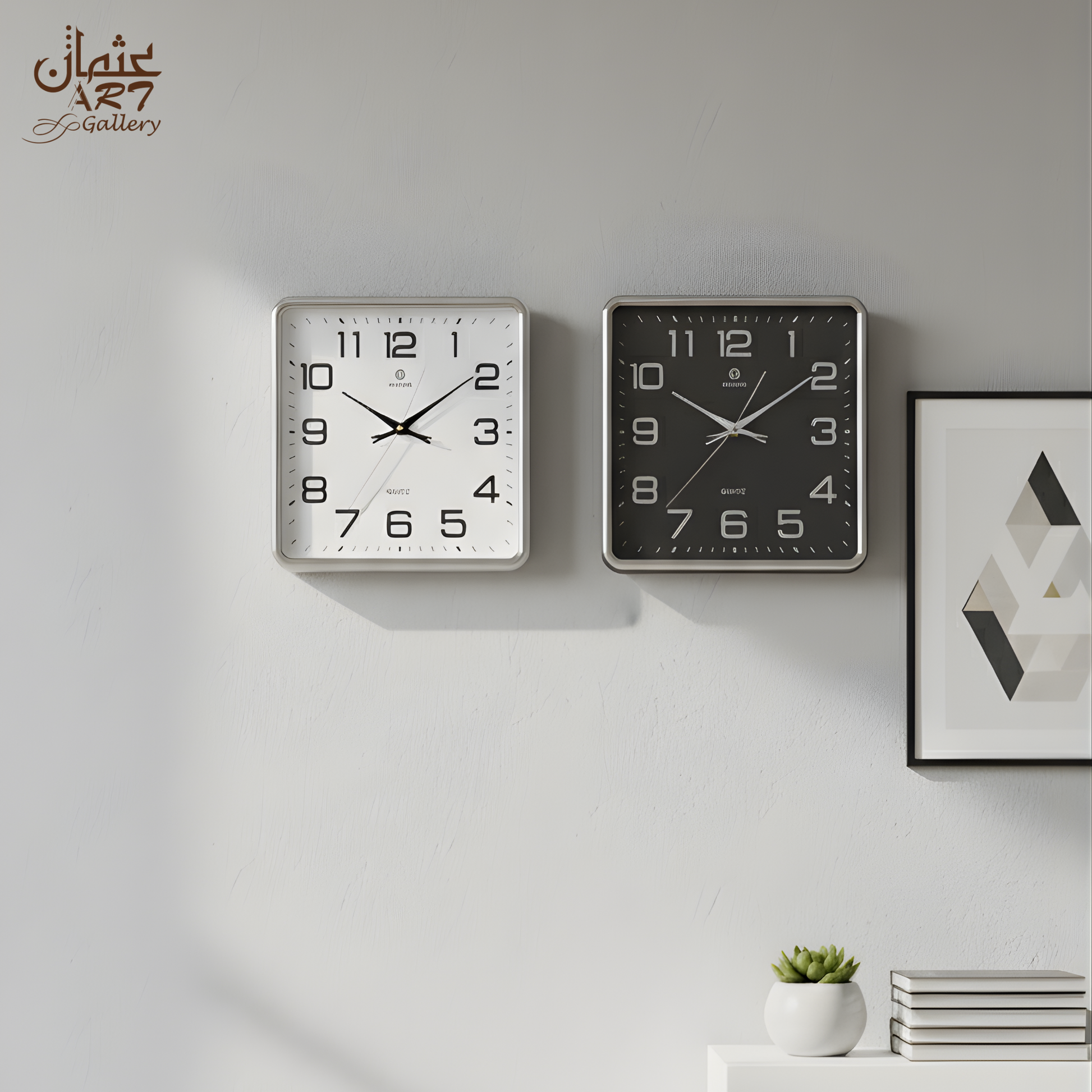 Square Wall Clock - Silver Frame, White Dial Square Wall Clock - Silver Frame, White / Black Dial