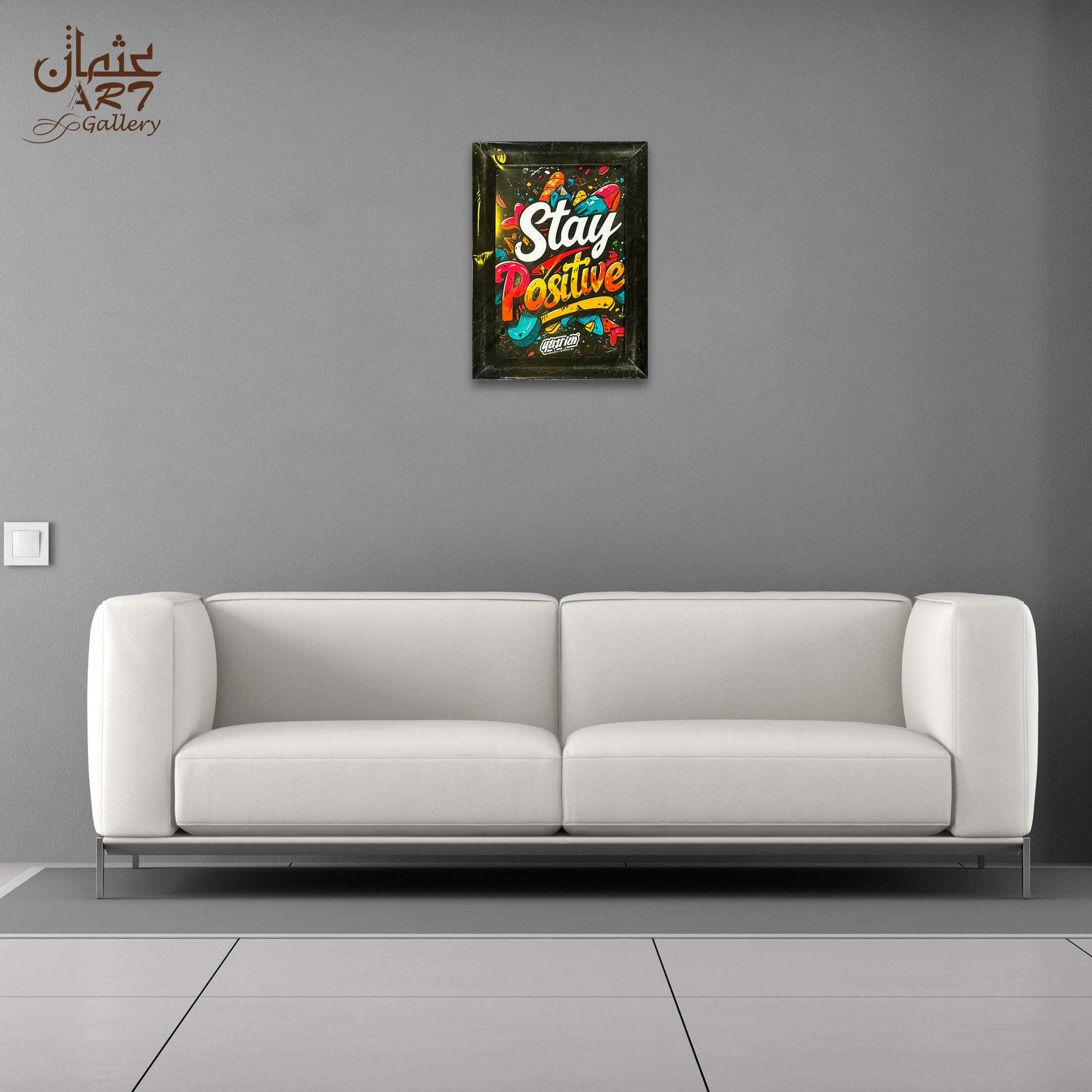 Bright and vibrant frame with the inspiring words “Stay Positive” in playful colours. Brings optimism and energy to any room.