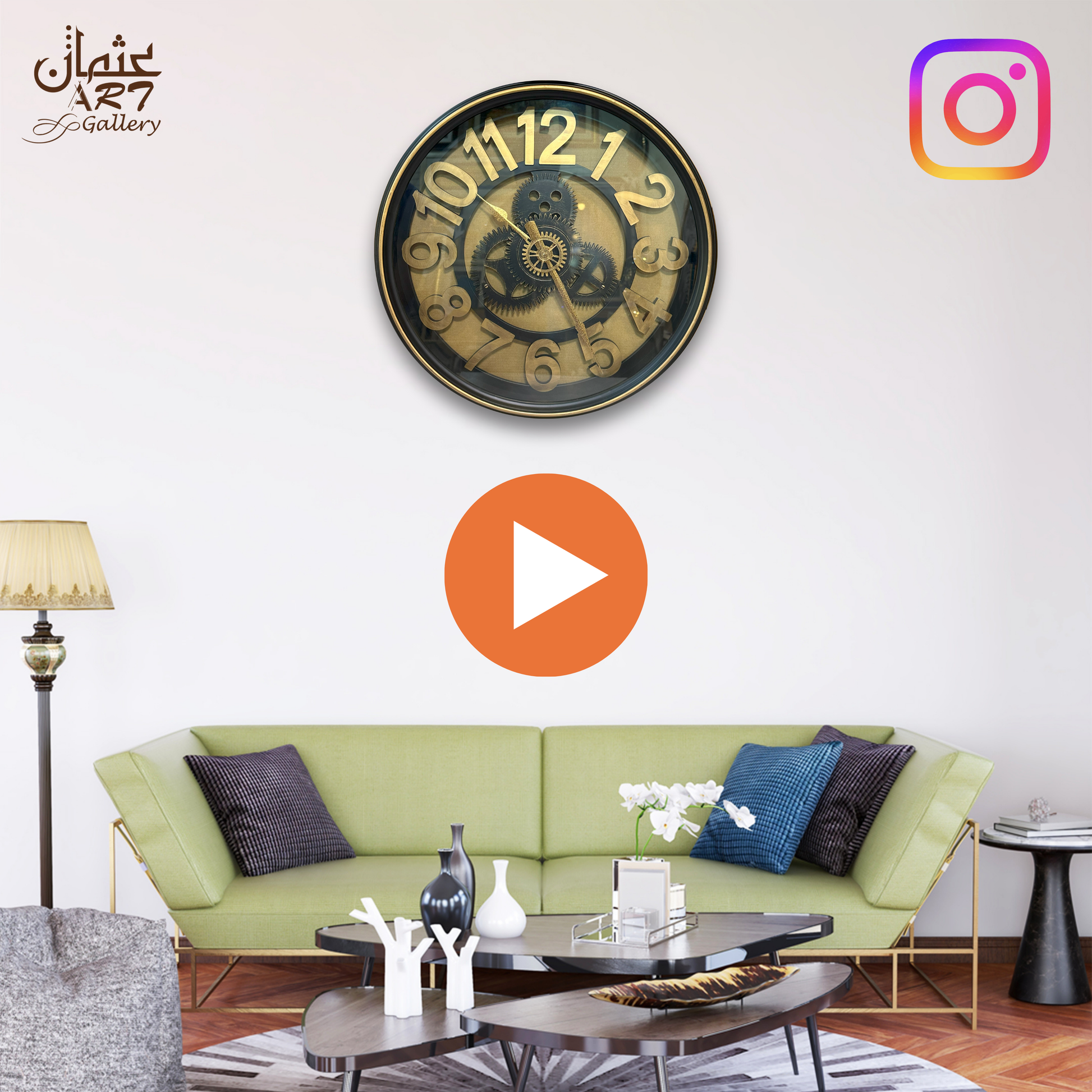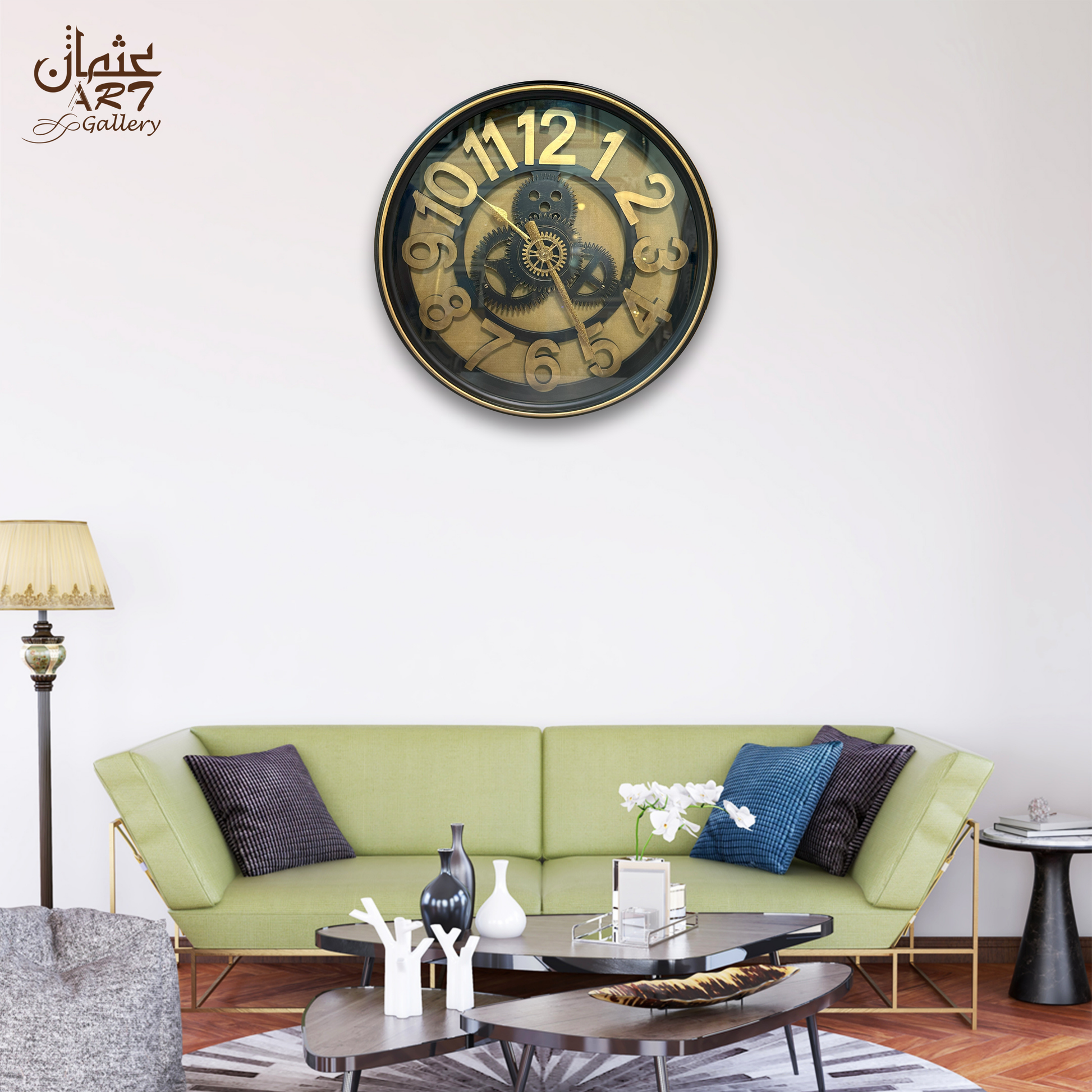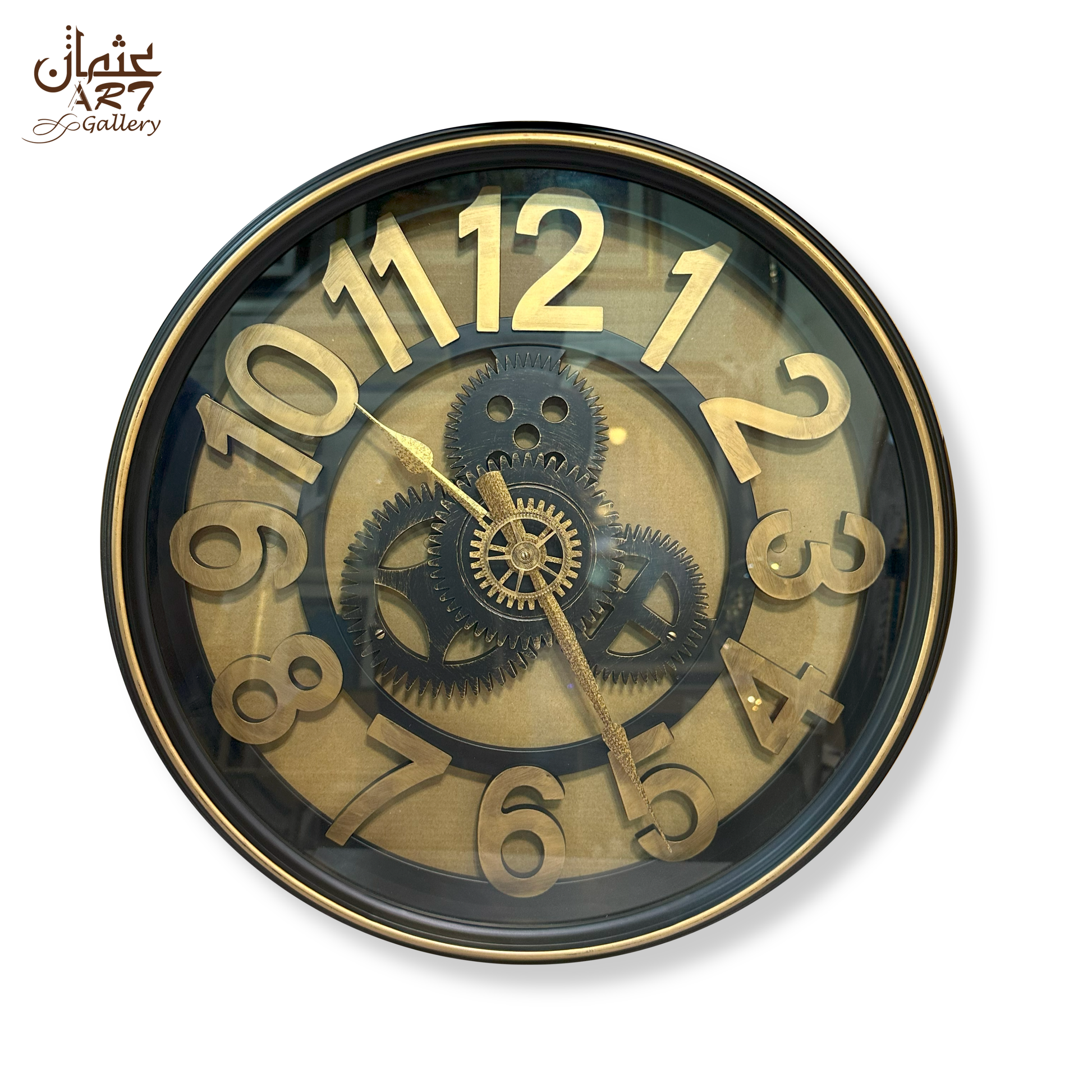 Large 20-inch antique transparent background clock featuring quartz gear-like second hand movement. Elegant for modern & vintage interiors.