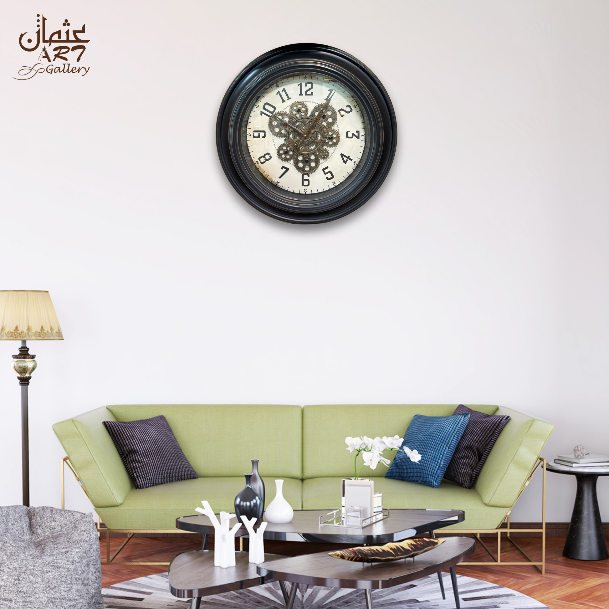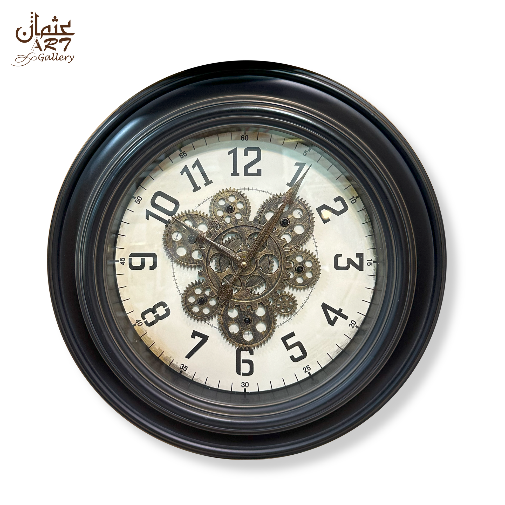 Antique clock with exposed gears and a British vintage-style dial. Elegant and timeless design for classic interiors.
